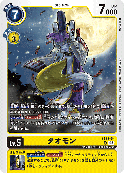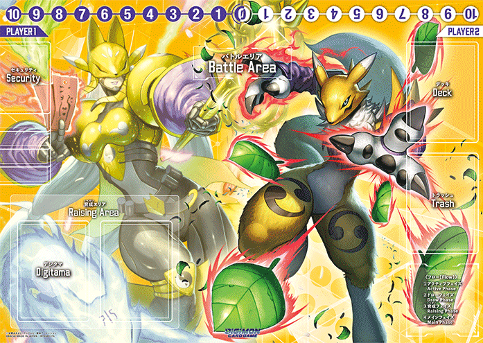 - ②在對方的回合中利用「ST22-10 金剛界曼荼羅」的抵抗能力確保巫女型態被留在場上,隨後配合對方的攻擊BLAST進化到「ST22-05 沙古牙獸ACE」!使用各種各樣的行動卡轉守為攻吧。