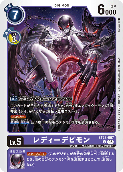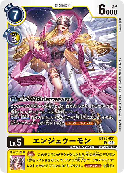 新加入的「BT23-031 天女獸」和「BT23-067 女惡魔獸」擁有登場消耗值減輕的效果,能夠以少量記憶體準備混沌神魔獸合體進化的素材。建議準備御神樂米蕾以便可以一直使用減輕消耗值的效果吧!特別是「BT22-089 御神樂米蕾」不僅能夠將需要的卡牌放入廢卡區,還能切換到其他米蕾,是一張推薦登場的卡牌。